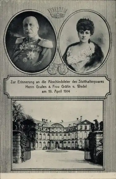 Ak Abschiedsfeier des Statthalterpaares Graf und Gräfin von Wedel, 1914, Portrait