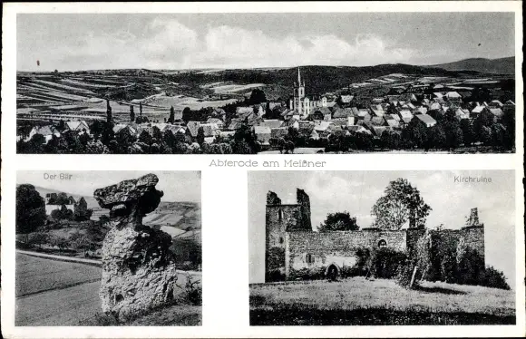 Ak Abterode Meißner in Hessen, Kirchruine, Feld der Bär, Blick auf den Ort