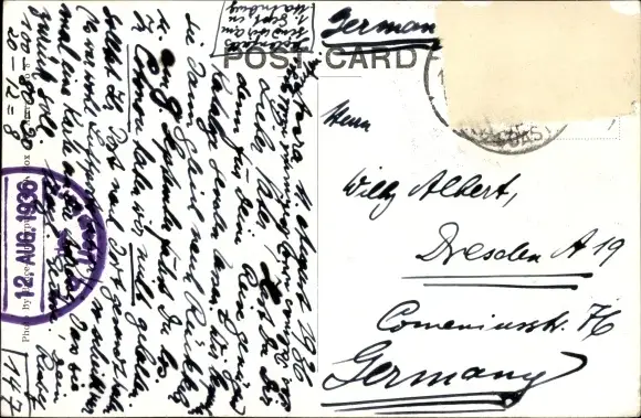 gelaufen 1936, Briefmarke entfernt, sonst guter Zustand