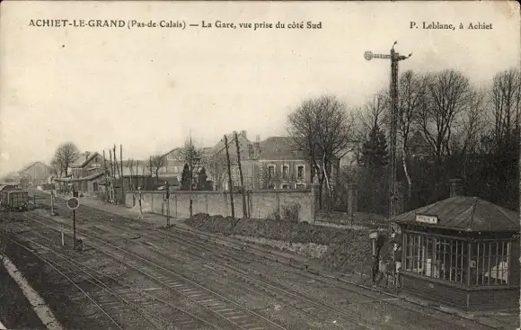 Ak Achiet le Grand Pas de Calais, La Gare, vue prise du cote Sud