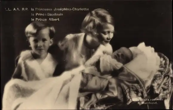Ak Adel Belgien, Josephine Charlotte, Baudouin, Albert, Portrait