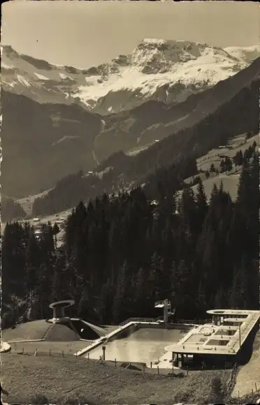Ak Adelboden Kanton Bern Schweiz, Schwimm- und Sonnenbad, Wildstrubel
