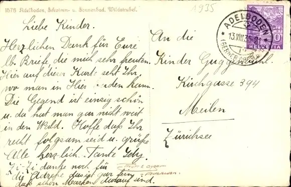 Zustand, siehe Scan, gelaufen, 1935 - ca 9 cm X 14 cm