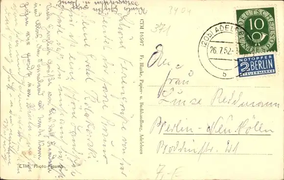 Zustand, siehe Scan, gelaufen, 1952 - ca 14 cm X 9 cm