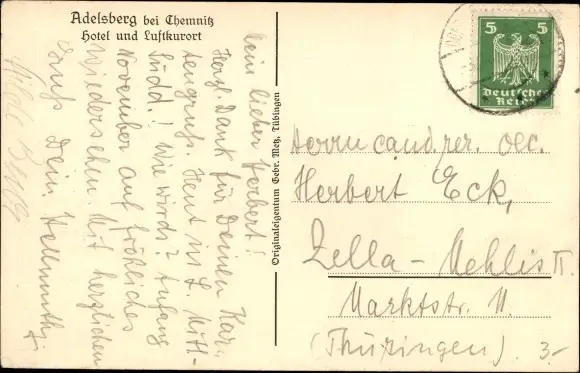 Ak Adelsberg Chemnitz in Sachsen, Hotel