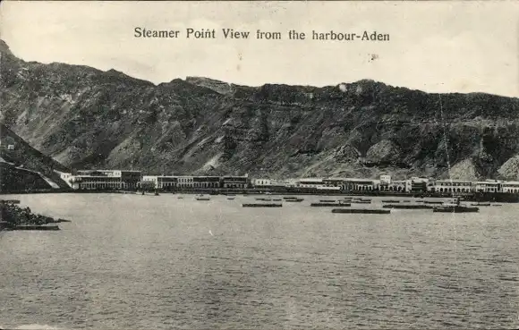 Ak Aden Jemen, Steamer Point Blick vom Hafen