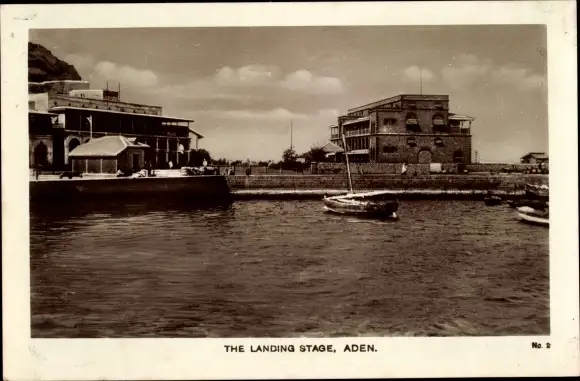 Ak Aden Jemen, The Landing Stage, Anleger, Boote, Gebäude