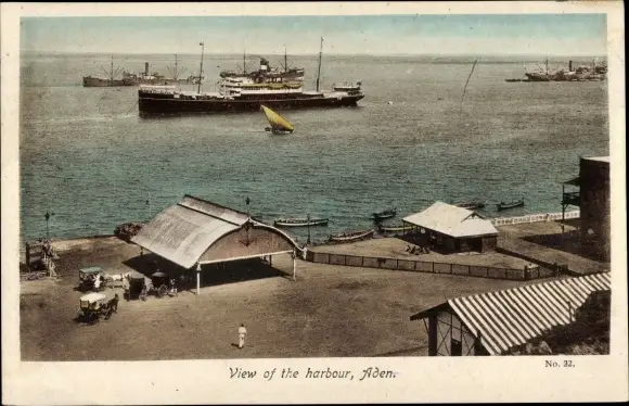 Ak Aden Jemen, View of the harbour, Dampfschiff