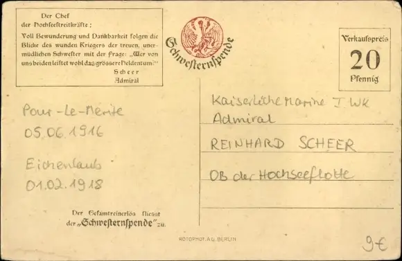 Ak Admiral Reinhard Scheer, Standportrait in Uniform