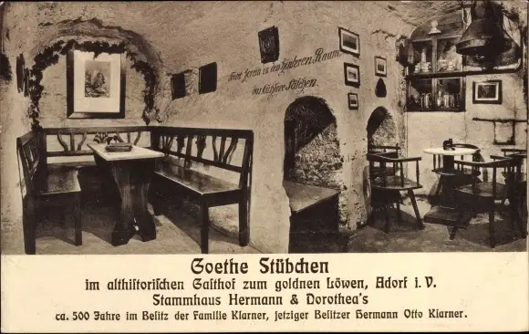Ak Adorf Vogtland, Goethe Stübchen im Gasthof zum goldnen Löwen, Speiseraum