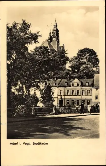 Ak Adorf im Vogtland, Ortspartie, Stadtkirche