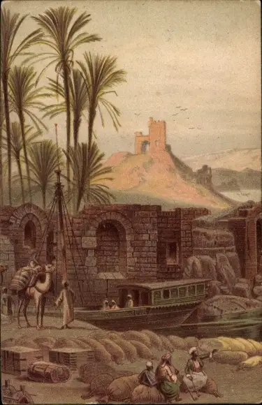 Ansichtskarte, Postkarte, Hafen, Schiffe, Boote, Dampfer, Boot
