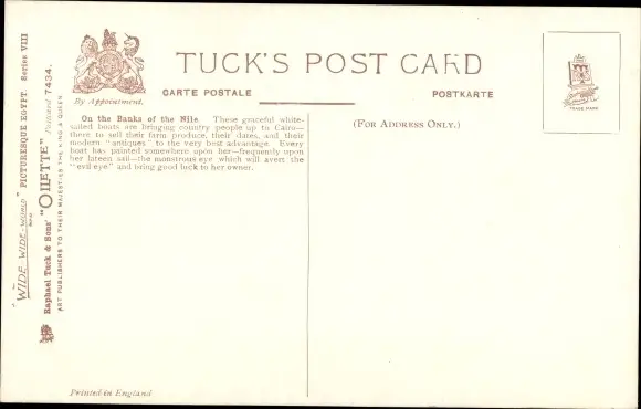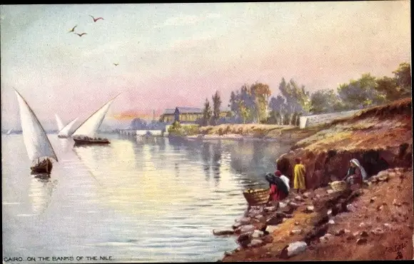 Ak Ägypten, On the Banks of the Nile, Segelboote