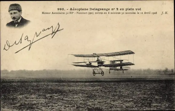 Ak Aeroplane Delegrange no 2 en plein vol, Flugzeug, Flugpionier
