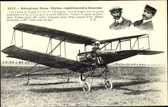 Ak Aeroplane Zeus, Biplan experimente à Gonesse, Doppeldecker, Flugzeug