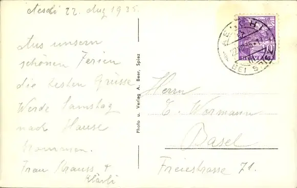 Zustand, siehe Scan, gelaufen, 1935 - ca 14 cm X 9 cm
