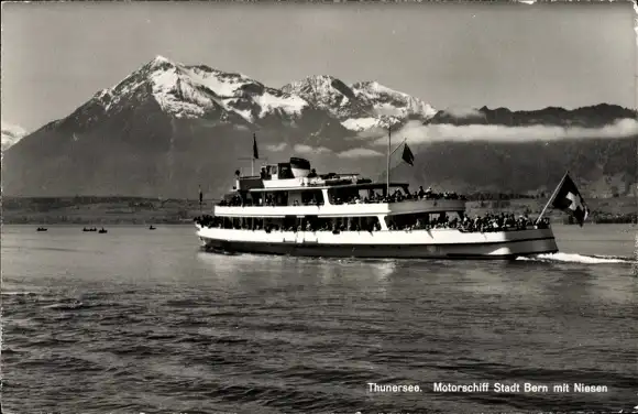 Ak Aeschi bei Spiez Kanton Bern, Niesen, Thunersee, Motorschiff Stadt Bern
