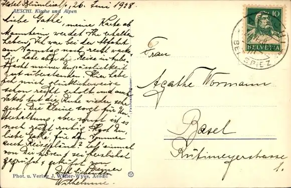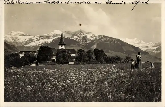 Ak Aeschi bei Spiez Kt. Bern Schweiz, Kirche, Alpen