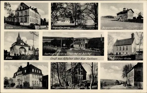 Ak Affalter Lößnitz im Erzgebirge Sachsen, Schule, Jugendherberge, Kirche, Gasthof