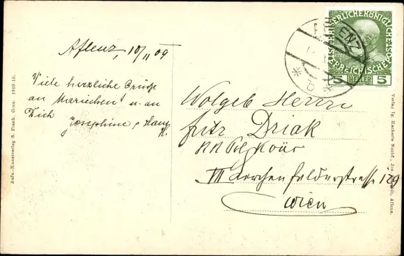 Zustand, siehe Scan, gelaufen, 1909 - ca 14 cm X 9 cm