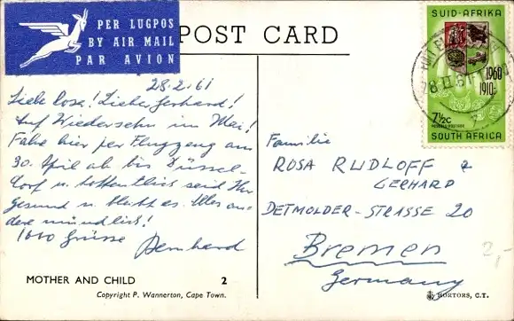 Zustand, siehe Scan, gelaufen, 1961 - ca 9 cm X 14 cm
