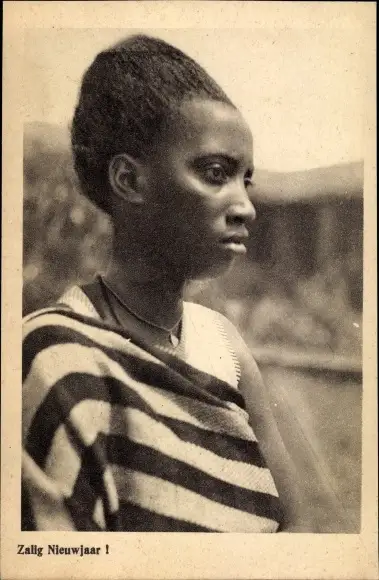 Ak Afrika, Portrait einer Frau, Halskette, Gestreifter Pullover