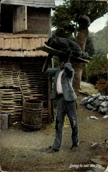 Ak Afrikaner auf dem Weg zum Markt, Schwein, Wohnhaus, Eimer