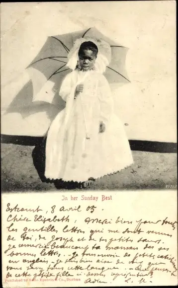 Ak Afrikanerin in Kleid, Sonnenschirm, In her Sunday Best