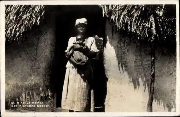 Ak Afrikanerin mit Kind, Portrait, Wohnhaus