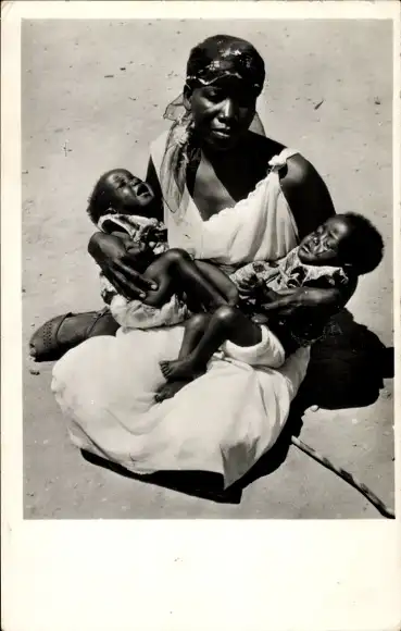 Ak Afrikanerin mit zwei Kindern, Porträt