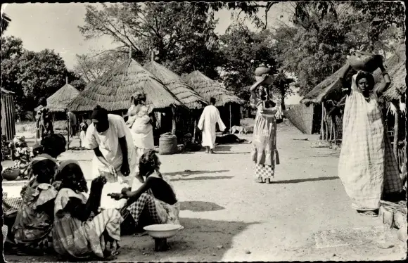 Ak Afrikanisches Dorf, Markt, Straße, Village Africain