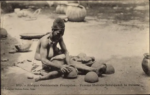 Ak Afrique Occidentale, Femme Malinke fabricant la poterie
