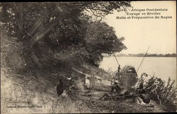 Ak Afrique Occidentale, Voyage en Riviere, Halte et Preparation du Repas