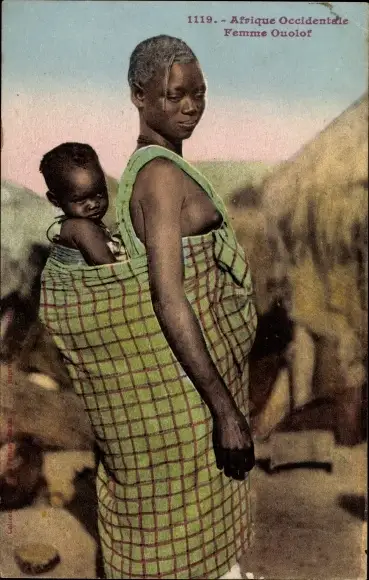 Ak Afrique occidentale francaise, Femme Oulof, Afrikanische Mutter mit Säugling