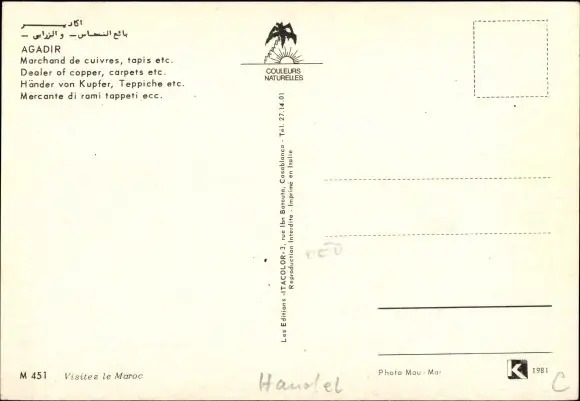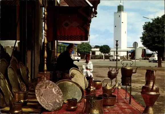 Ak Agadir Marokko, Händler von Kupfer, Teppiche
