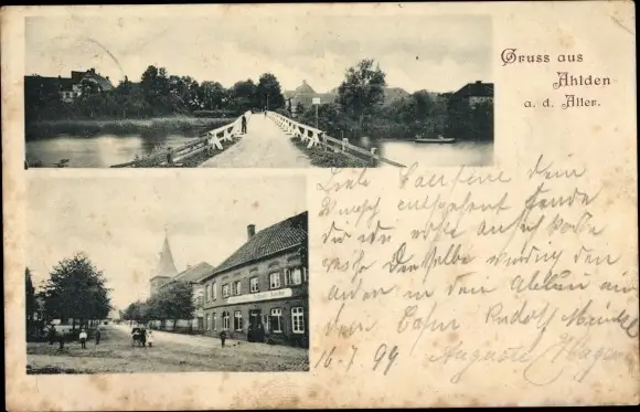 Ak Ahlden Aller, Brücke, Gasthaus August Asche
