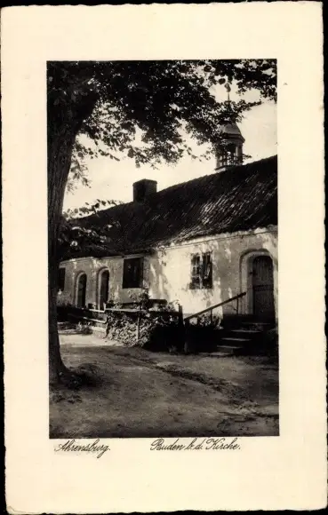 Ak Ahrensburg in Holstein, Buden b.d. Kirche