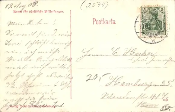 Zustand, siehe Scan, gelaufen, 1908 - ca 14 cm X 9 cm
