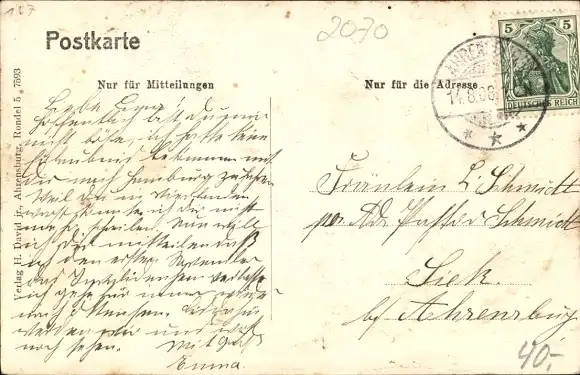 Zustand, siehe Scan, gelaufen, 1908 - ca 14 cm X 9 cm