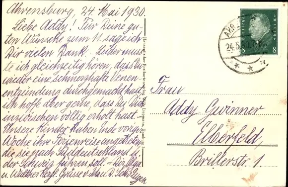 Zustand, siehe Scan, gelaufen, 1930 - ca 14 cm X 9 cm