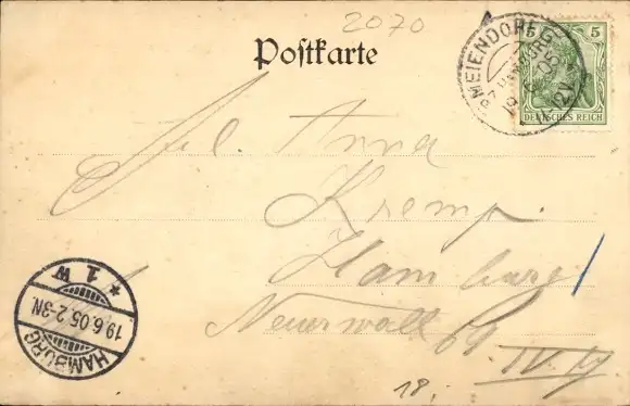 Zustand, siehe Scan, gelaufen, 1905 - ca 14 cm X 9 cm