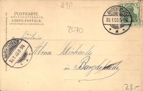 Zustand, siehe Scan, gelaufen, 1903 - ca 14 cm X 9 cm