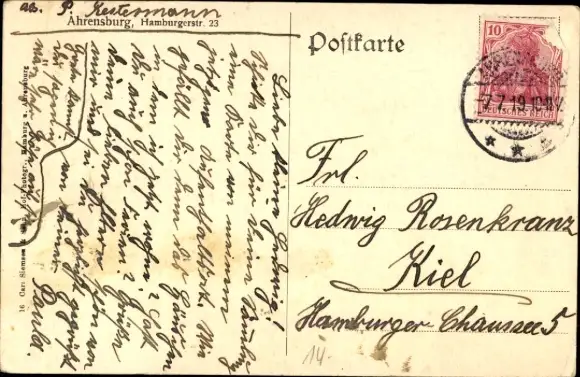 Zustand, siehe Scan, gelaufen, 1919 - ca 14 cm X 9 cm