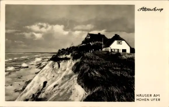 Ak Ahrenshoop Mecklenburg Vorpommern, Häuser am Hohen Ufer, Meer