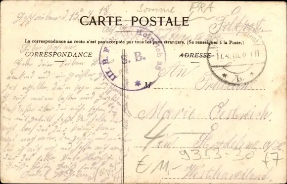 Zustand, siehe Scan, gelaufen, 1918 - ca 14 cm X 9 cm