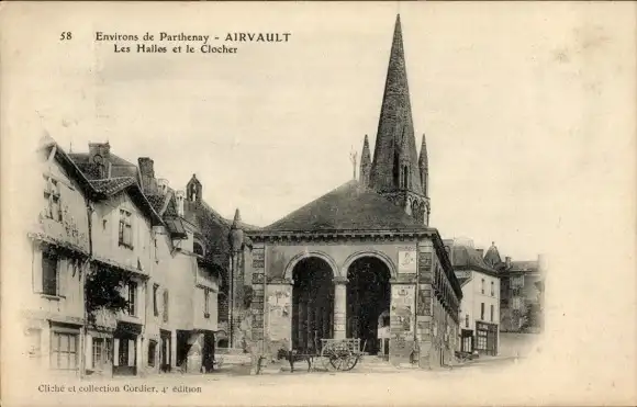 Ak Airvault Deux Sèvres, Halles, Clocher