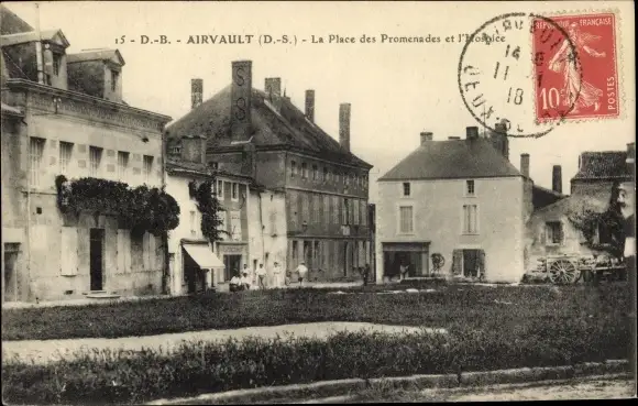 Ak Airvault Deux Sèvres, La Place des Promenades et l'Hospice