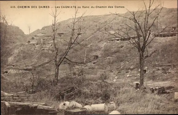 Ak Aisne, Chemin des Dames, Les Cagniats au flanc du Chemin des Dames