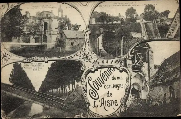 Ak Aisne, Zerstörte Häuser, Gebäude, Brücken