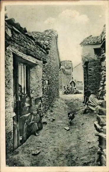 Ak Ait Hicem Algerier, Eine Dorfstraße